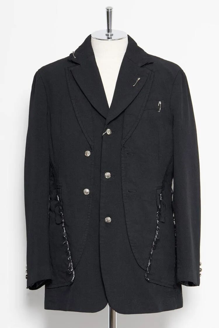 采用 CDG「Homme Plus」单品,包括夹克、裤子、洋装品项,在 Chrome Hearts 独家改造下,呈现绝无仅有的款式。