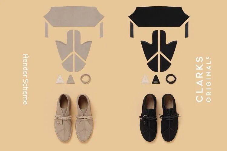 来自日本的手工职人品牌 Hender Scheme 携手英国休闲鞋履品牌 Clarks Originals 打造以经典鞋款为蓝图的全新联名沙漠靴「Desert Seam」,发布驼色和黑色两种式样。
