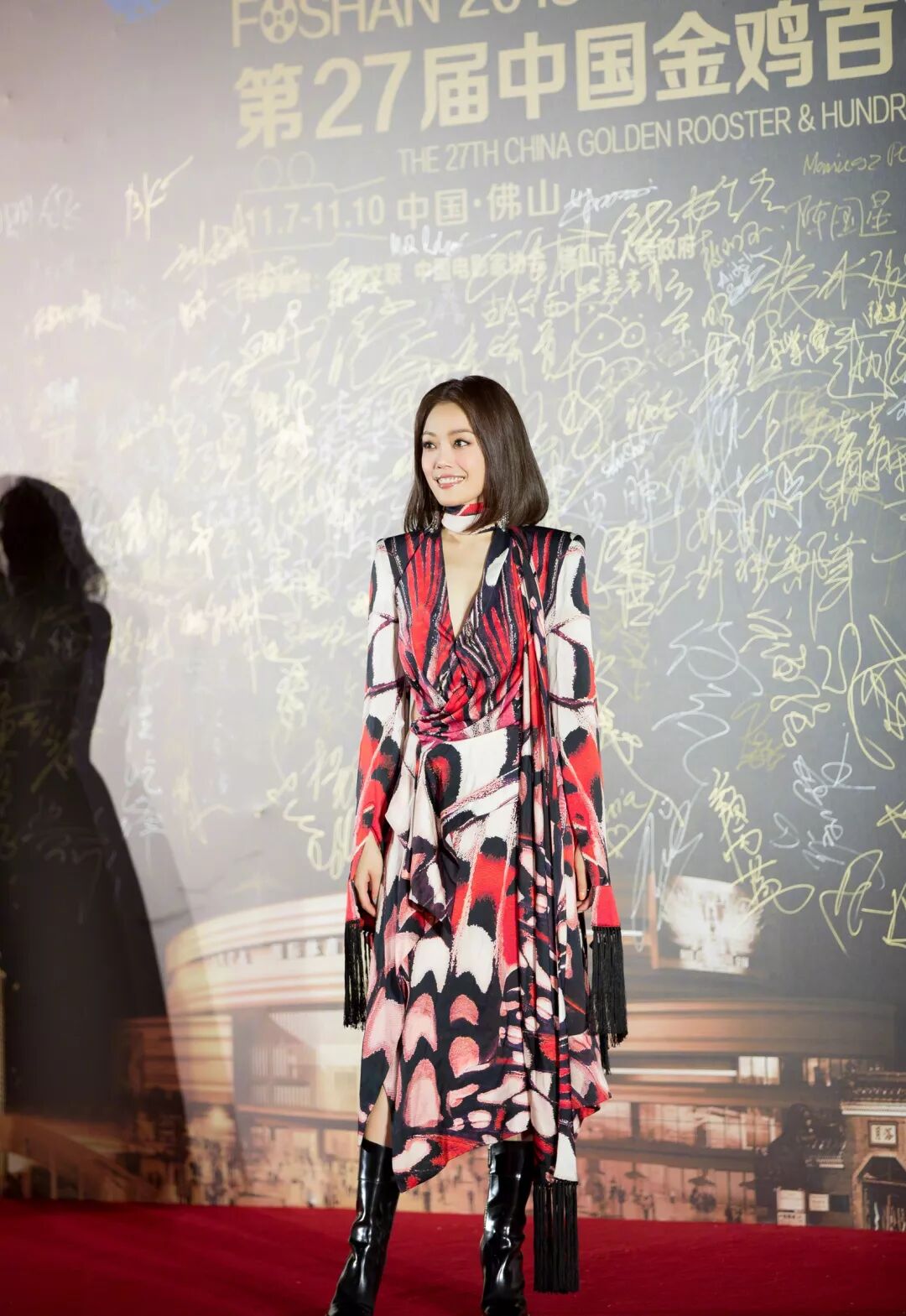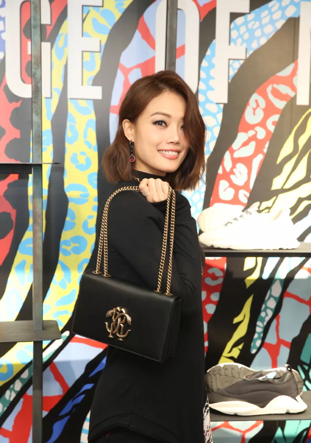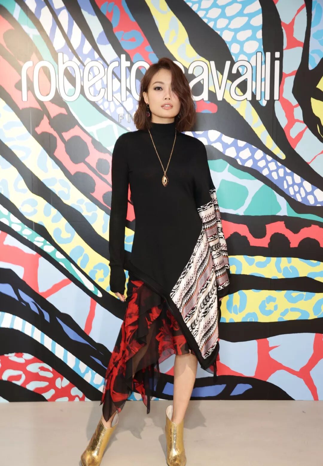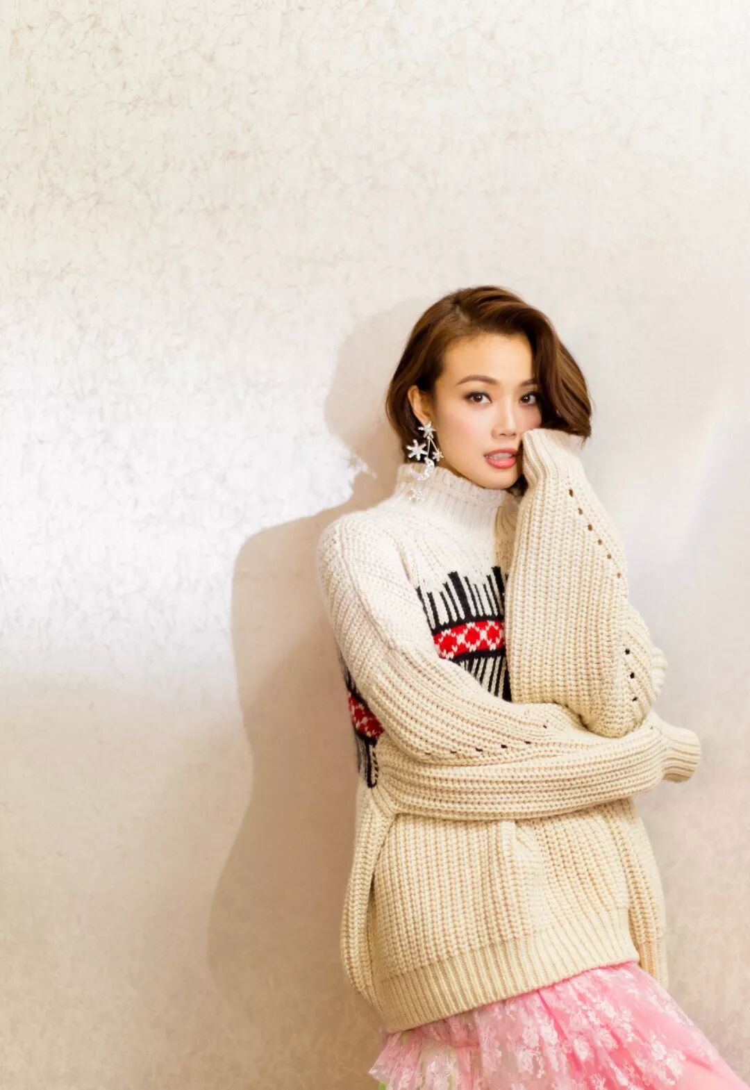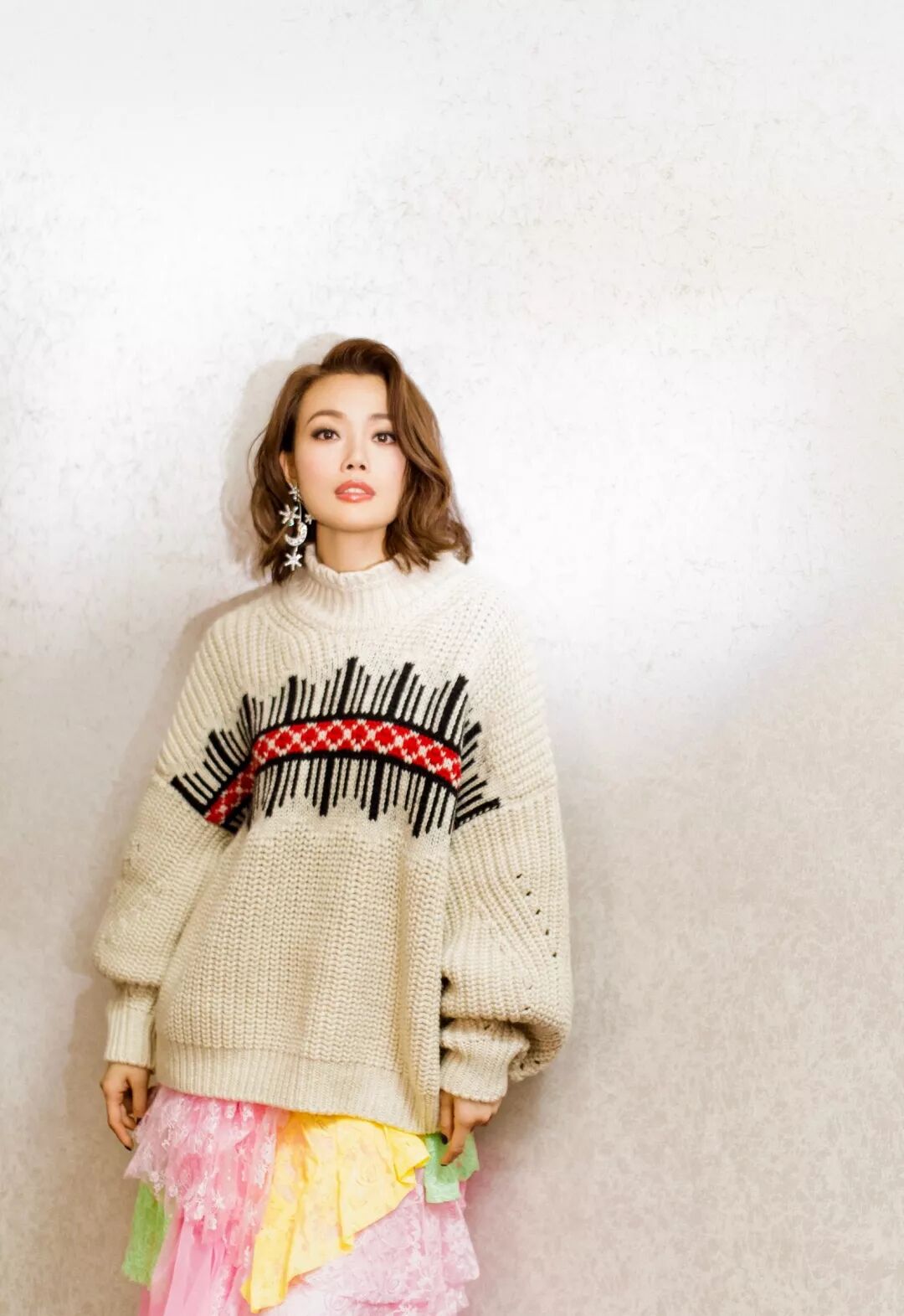 依旧是锁骨卷发,这一套穿搭的容祖儿,减龄同时也有着帅气感。上面穿着印花高领毛衣,下面穿着一条红色印染半裙,全身穿搭很时髦也非常有个性,感觉容祖儿帅气又性感,时髦感倍增!锁骨卷发的容祖儿也是很俏皮,卷发修饰脸型,美得更精致。