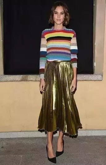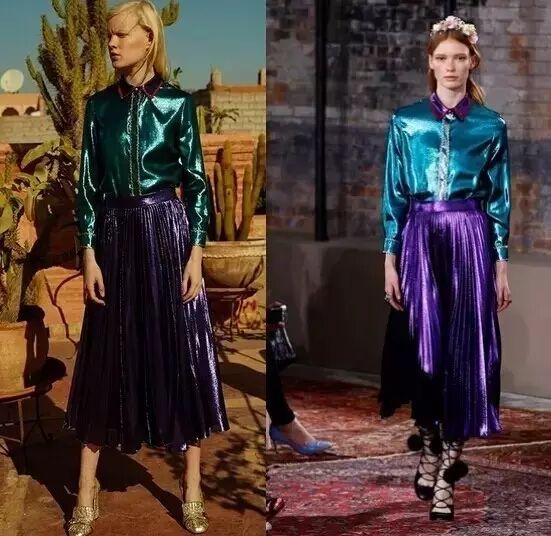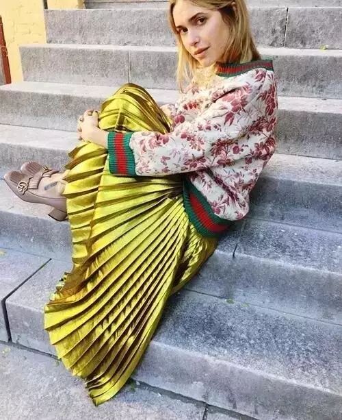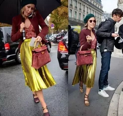 就是有金属质感亮色系的百褶裙啦