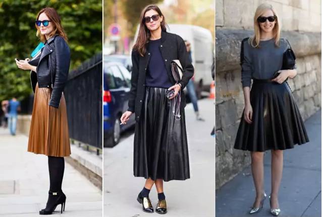 皮质的百褶裙非常的有质感