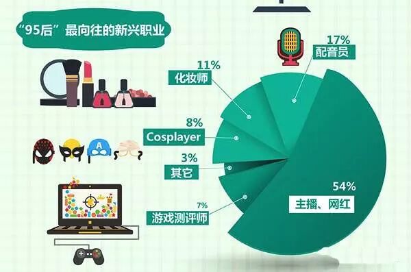 很多95后的理想职业是网红,现在的小学生也是10个有8个都想当网红。