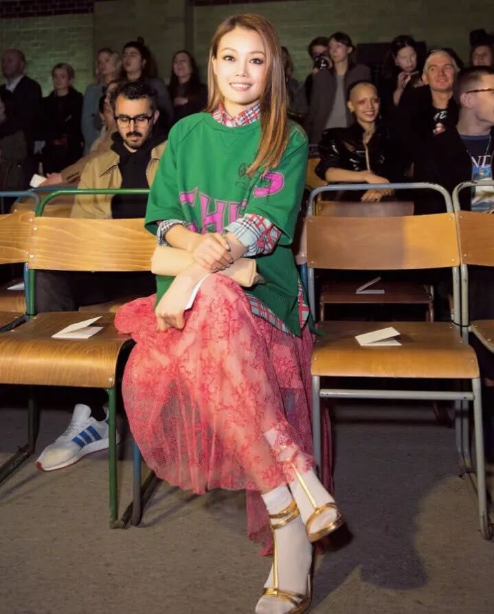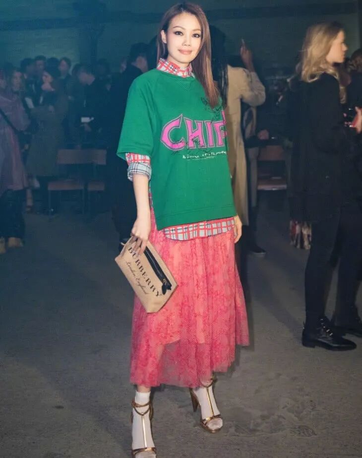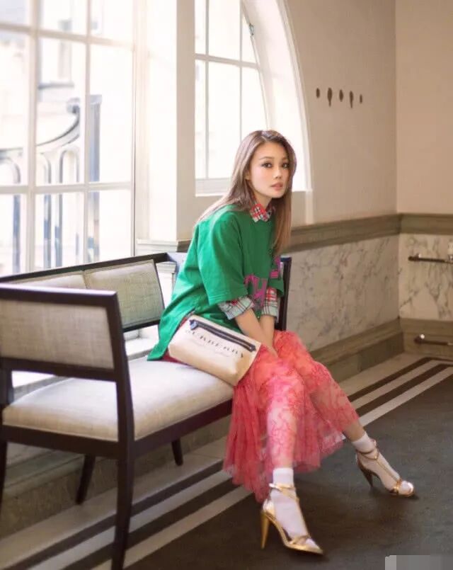 容祖儿的这身搭配只看衣服是比较成功的,格子衬衫搭配绿色短袖,层次分明,活力十足。再配上红色裙子,青春亮丽,很时尚的搭配。只是搭配的鞋子太丑,还穿上了白色袜子,真的是欣赏不来这种时尚。