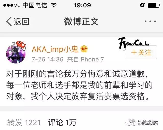 最后这个选手道歉退赛(可是过了半年去参加《偶像练习生》人气挺高成功出道了)。