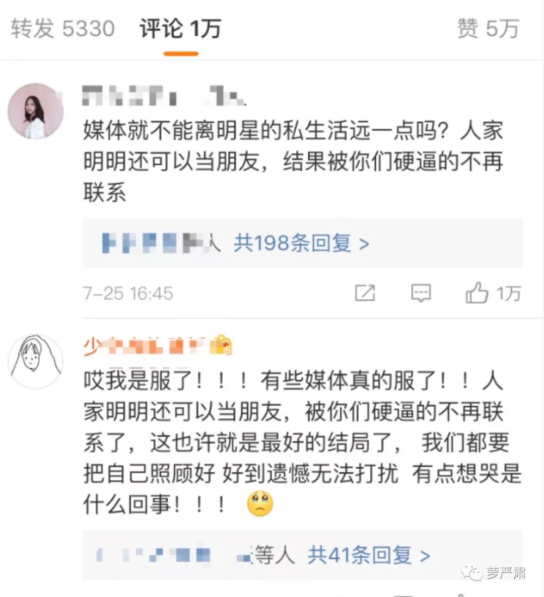胡彦斌的微博里热评有人觉得这是媒体的错:都是媒体搅黄了冰爽的秘密复合,现在搞得大家朋友都没得当,媒体你们好毒惹!
