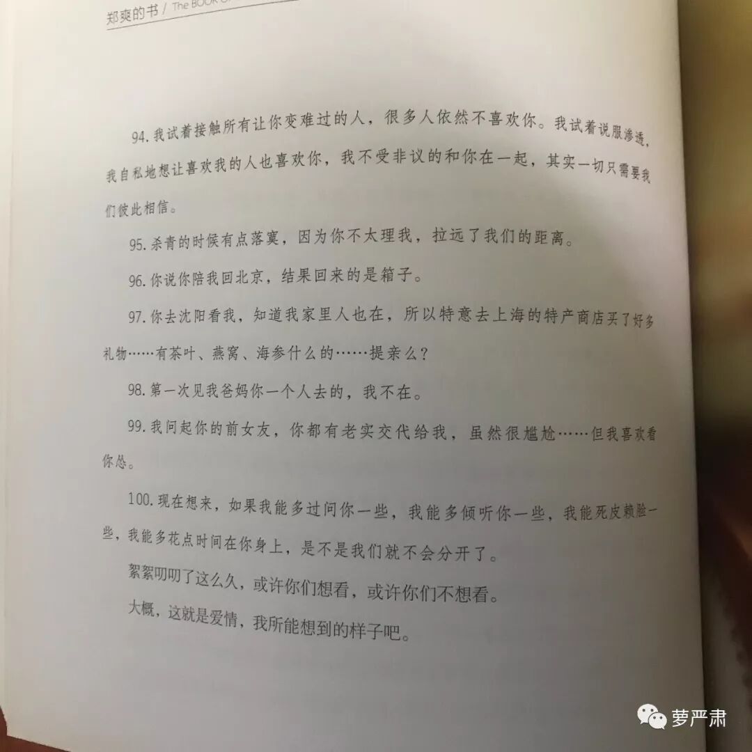 郑爽那关于爱情的100件小事是《郑爽的书》最大的卖点,还是挺真情实感的,大家看这些感受一下