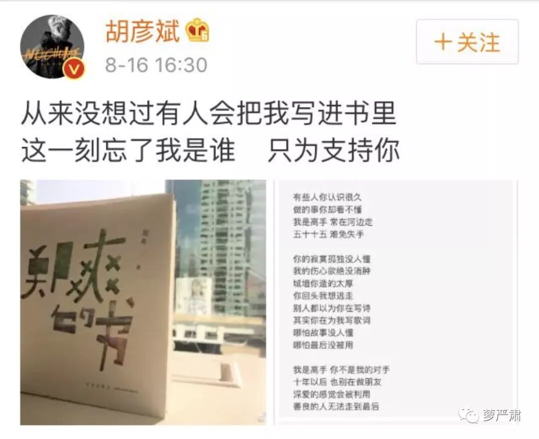仔细看看胡彦斌微博配的歌词,根本不是支持,感觉是在吐槽啊。