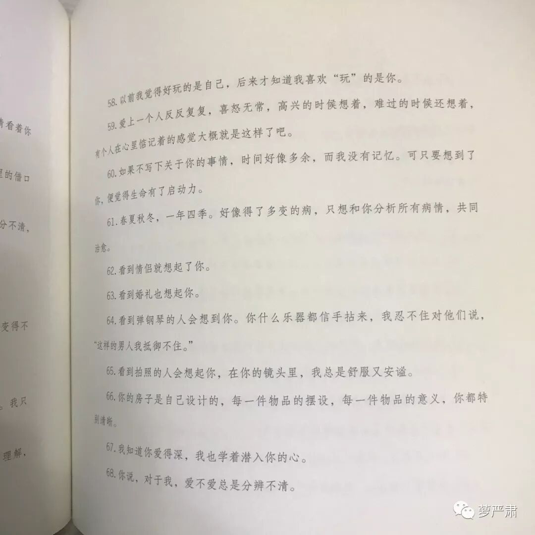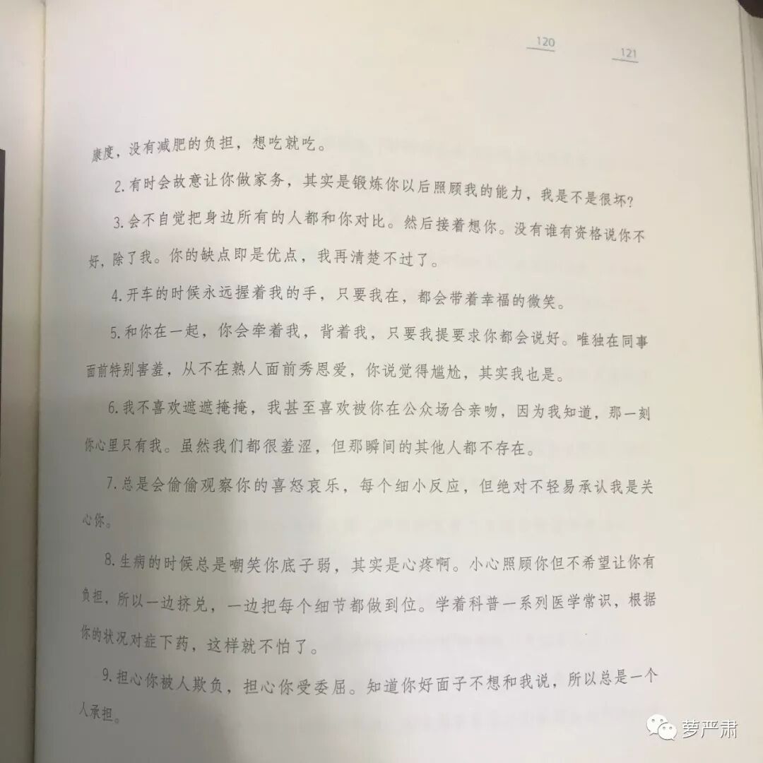 26.你变成什么样子我都可以接受,我们在一起的第一天,我不算(应该是“不断”)给自己设想和提问,如果你受伤了,变胖了,大小便失禁了,我是否还和现在一样爱你?我把所有胡思乱想代入,哎,我居然还是那么喜欢你。