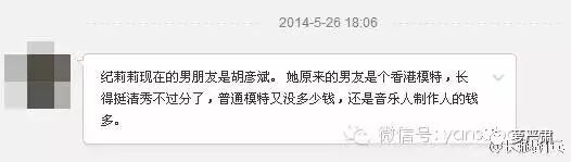 冰爽恋曝光之初,胡彦斌就被指可能劈腿了模特,2014年微博上的@长腿胡乓 就听说说模特纪莉莉跟胡彦斌在一起了。