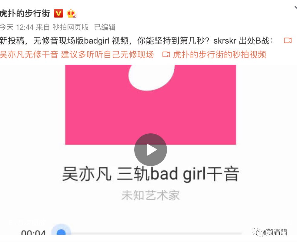 挂出来还没完,干脆在微博也放了吴亦凡车祸现场消音音频还击。