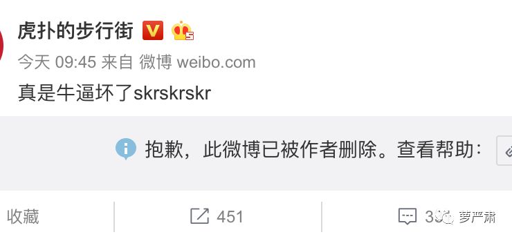这事儿被@虎扑的步行街 挂出来了:真是牛逼坏了 skr skr skr(该微博ID认证信息是虎扑的运营经理)