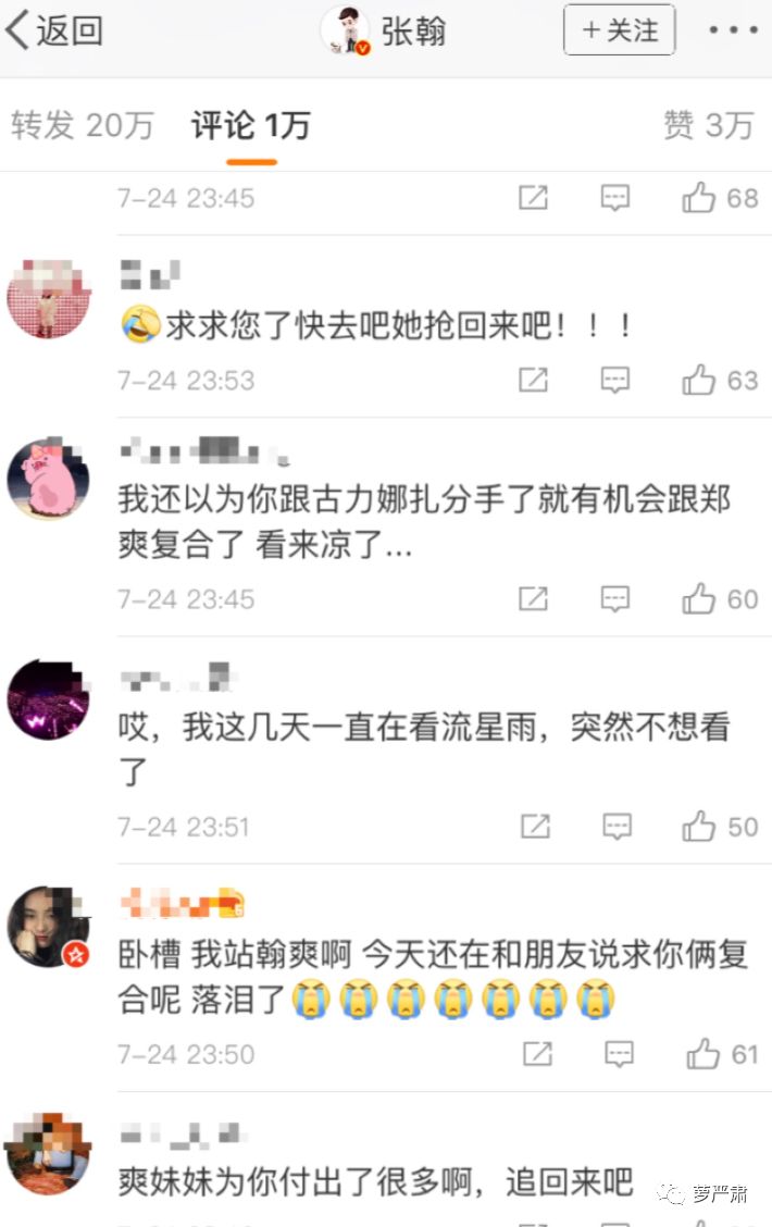 唯一不开心就是翰爽cp党。张翰的微博又一次被翰爽cp党攻占: