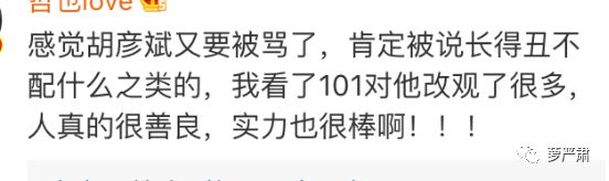 anyway,相比过去胡彦斌被群嘲的场面,《创造101》后蛮多人说胡彦斌不错。