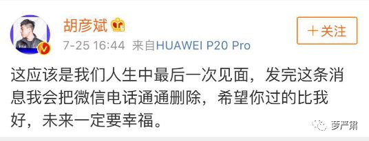 但胡彦斌留了一个小口子:虽然不能再当朋友,但是前任要是有帮忙,他会鼎力相助。