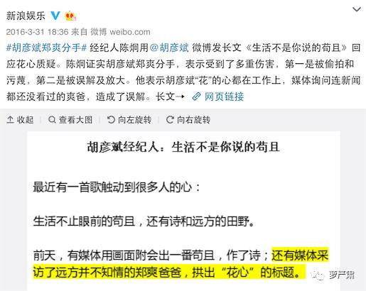 爽爸说胡彦斌是花心大萝卜的时候,胡彦斌经纪人还发长微博说委屈,受到多重伤害,被诬蔑、误解……
