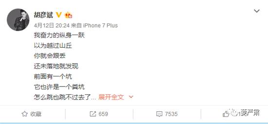 然而2017年4月胡彦斌发了这条微博:“前面有一个坑,它也许是个粪坑。”