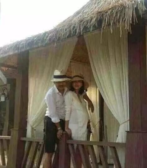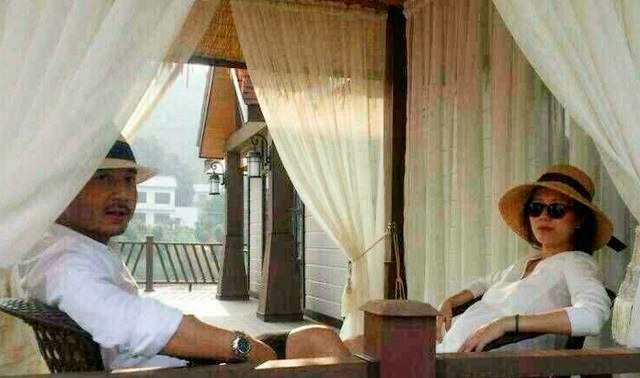 汪涵、杨乐乐夫妇悠闲晒太阳
