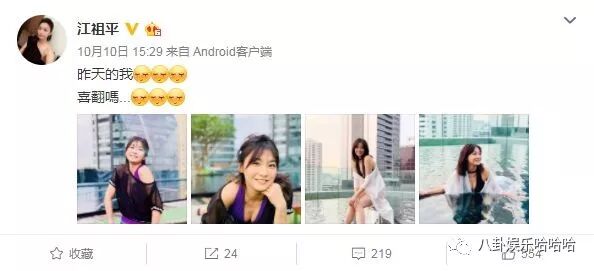 照片中的江祖平身材火辣性感,黑色深V紧身衣,外罩一件白色纱衣,非常吸睛。江祖平还配文称:昨天的我,喜欢的吗?