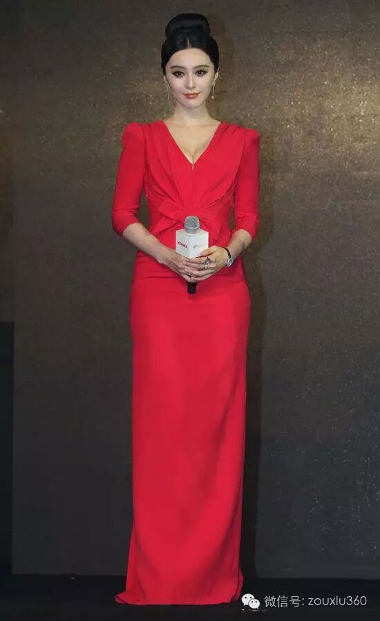 这件低胸的修身长红裙穿在范冰冰身上非常的适合!将她的身段完美的展现出来,美得太惊艳了!