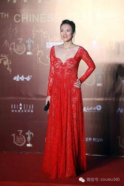 相比范冰冰与蒋欣,章子怡穿起红裙来,就显得不那么如意了。