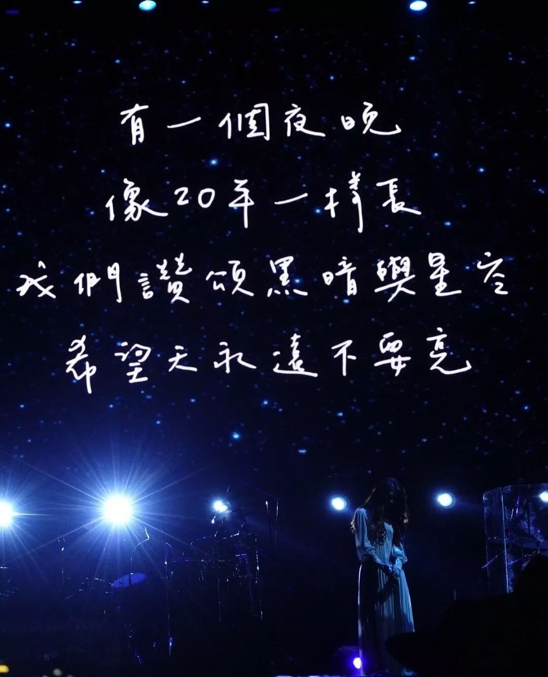 老实说,我感动的不是陈绮贞要我们一起配合她制造的人工银河,不管是暗黑版-手机黑屏且关掉所有的灯光,正常版的-手电筒不关,还是动态的银河系-手电筒有节奏的打开关闭。我觉得也就那样吧,不怎么感动,只是觉得很幸福。看,这么多人愿意配合着呢。
