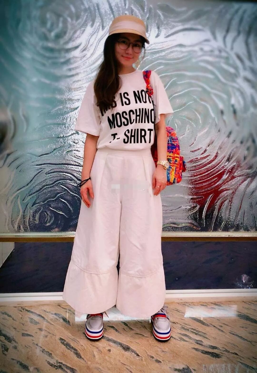 个子矮的妹子也可以仿照任家萱的这样穿的,而且还可以特意用比较宽松的棉麻织机的长裤来遮掩腿部的曲线,让原本比较胖的妹子的大肥腿看上去就不那么的明显了。他的上半身就是一件非常简单的白色T恤,上面简单的印着黑色的字母印花。