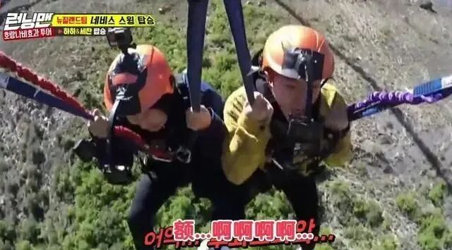这里格外说一下这个豁免权,当时哈哈在去新西兰之前就恳求金钟国替他跳一次,因为他真的恐高。这个一直看《runningman》的朋友应该也都知道。