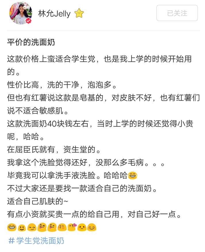 不过最近林允分享了一款40块的洗面奶,却在评论区被粉丝diss到爆,虽然大家对林允推荐的产品都很信服,但这款资生堂的洗颜专科洗面奶却引发了粉丝的各种讨论。