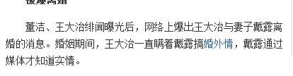 而更可笑的是,王大治也是婚内出轨,她当时的妻子戴露还是透过媒体才知道的,当然两人也以离婚收尾。