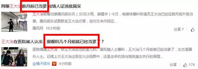 再打开热搜仔细看一下,似乎有点不大对劲,报道标题均是说他数月前已经当爹