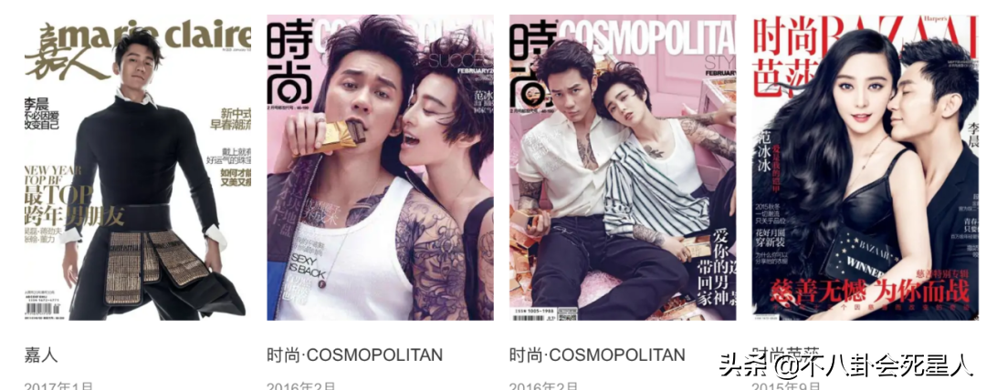 那几年,土味十足的李晨趁着范冰冰时尚影响力的东风,更频频登上杂志封面,绝对是娱乐圈最高调的情侣,没有之一。