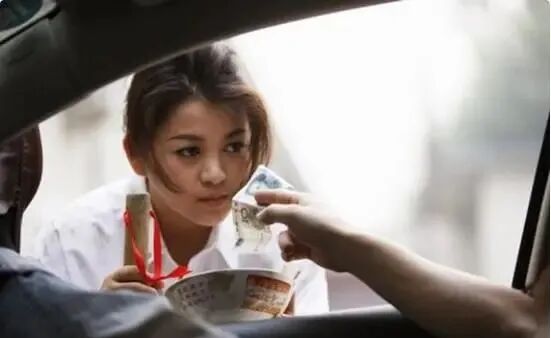 有车主伸手给了十元钱,她反而看都不看一眼,转手就伸向了其他的车主。