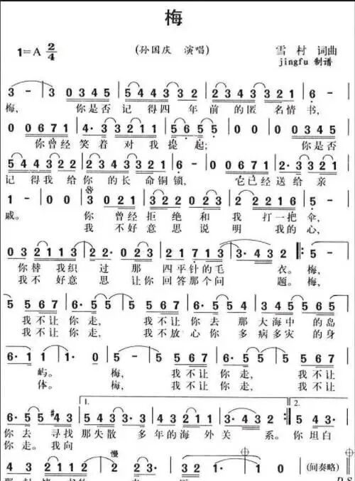 他的才华也得以体现,孙国庆所唱的《梅》,歌词便出自雪村之手。