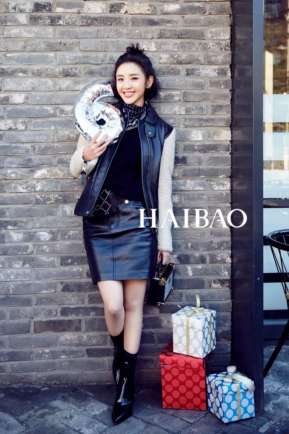 黑色与白色天生就是一对,别致黑白拼接搭配简约廓形,一件摩登感十足的夹克给你足够的温暖与摇滚范,搭配简单的皮裙与黑色短靴,闪亮的配饰让人耳目一新,轻松自在的搭配展现出了独特的摩登范儿。