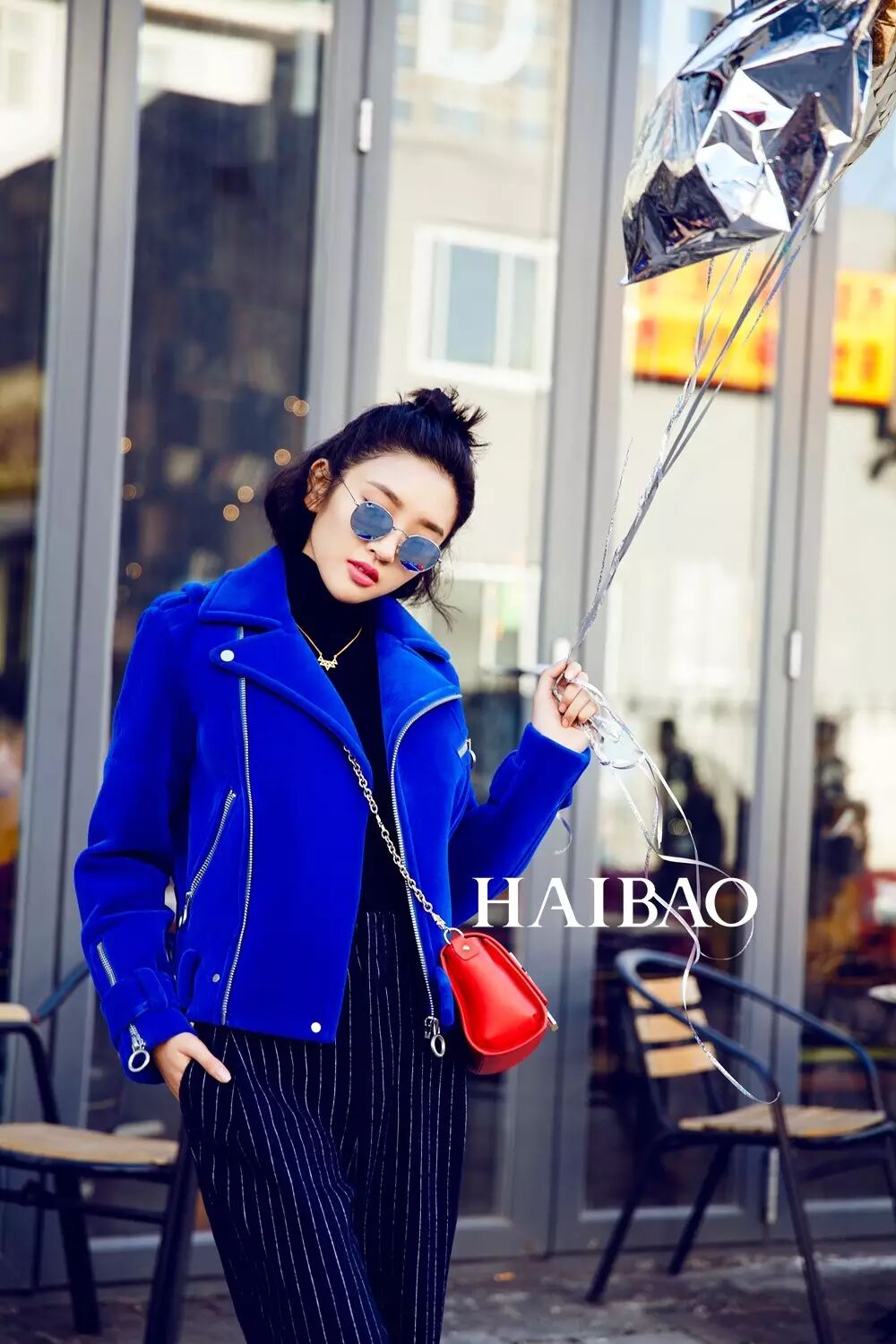 谁说节日就得全身红?学学唐艺昕,挎上一个红色小包点缀一下即可,蓝大衣衬托了红色,高饱和的色彩愈显温暖,撞色撞得俏皮活泼。再加上一条宽松条纹阔腿裤街头感十足,彩色涂鸦球鞋时髦潇洒,却不喧宾夺主。