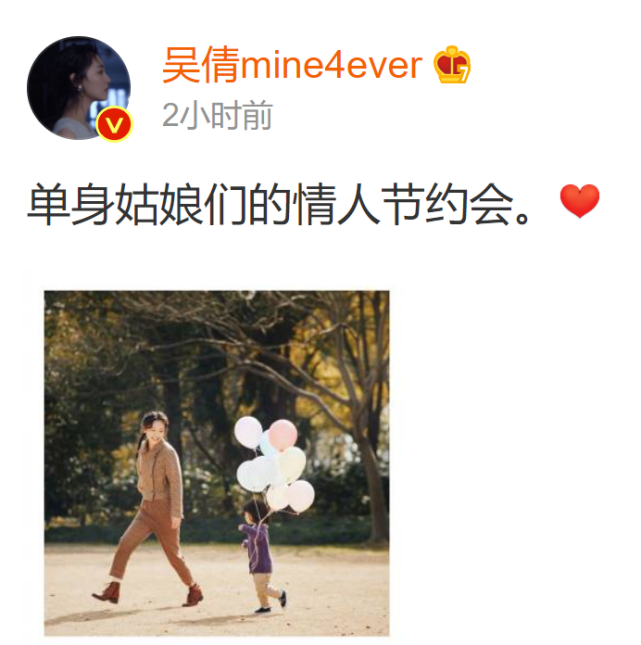 吴倩在微博上表示:单身姑娘们的情人节约会!