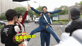在拍戏的空隙,还会满足吴倩“举高高”的甜蜜要求。