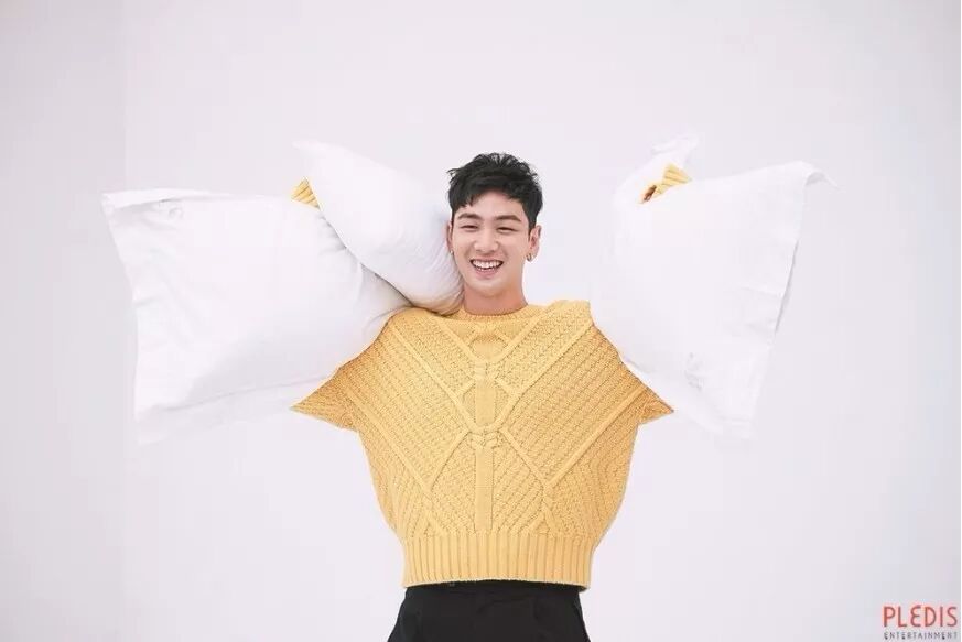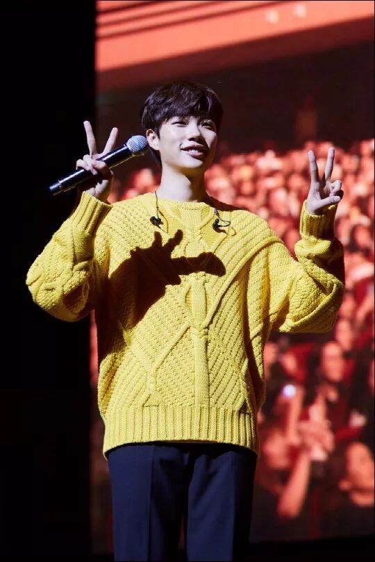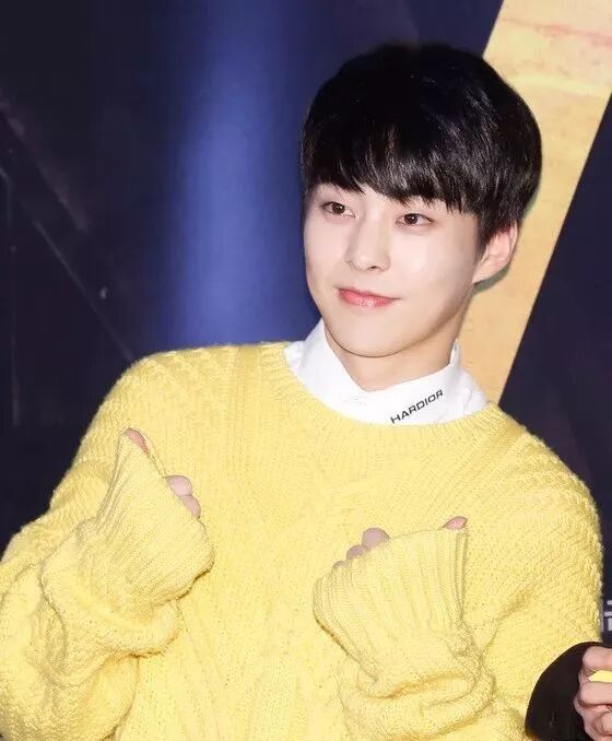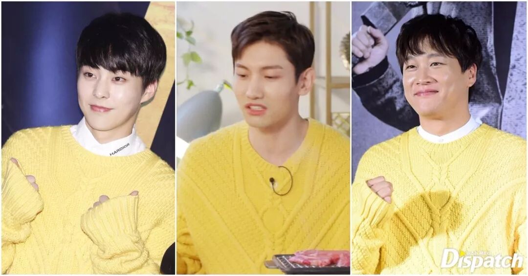 有一件黄色针织套衫从EXO成员XIUMIN,