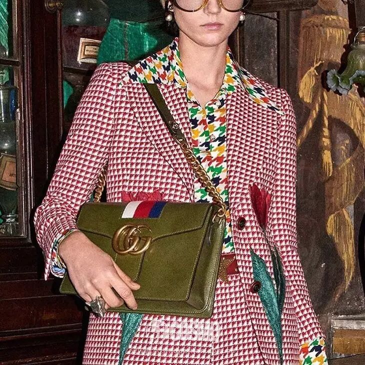 Gucci的品牌标志是红绿相间的线条,原本是有点老气的,但是打从换了设计师之后,这个经典搭配一下子就成了时髦风向标!