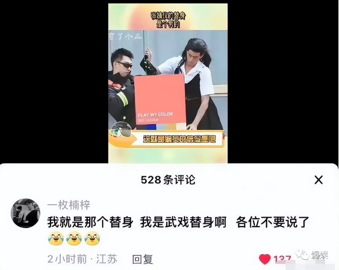 并且,疑似替张靖仪拍摄的这个男替身演员也发声回应了此事,他表示自己是武戏替身,剧组也是为了最后呈现的效果考虑才用他替代张靖仪完成后续拍摄,并希望大家不要再黑了。其实,儒爷能理解这位替身演员的想法,毕竟替代演员完成他们无法完成的动作是这些替身演员的职责。如果所有艺人全都真身上阵,虽然可能会让艺人敬业,但是很多艺人可能会因为做得不够好,从而导致拖累拍摄进度以及作品的最终呈现效果。