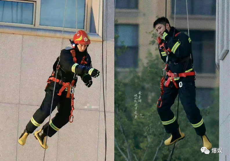 而路透照除了曝光了黄景瑜的消防员造型之外,还曝出了他们吊威亚拍的高空戏份。只见黄景瑜被吊在高空中身形帅气,或许因为之前拍过不少吊威亚的戏份,所以黄景瑜对于这些高空戏也算是手到擒来了。