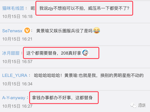 不过,两人虽然很搭,但是张婧仪用替身这事也是引发了网友们的吐槽。表示现在的208真的好拿,吊个威亚都要用替身。更有网友调侃到,所幸是黄景瑜,如果换别的男明星可能就抱不动这个男替身了。