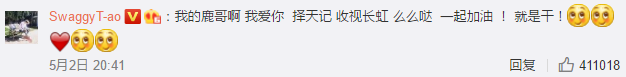 黄子韬回:鹿哥,爱你哟么么哒。