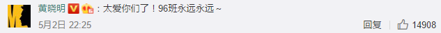 不仅如此,黄晓明还转发评论说:太爱你们了,96班永远永远。