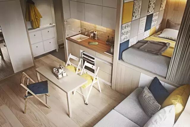 充分发挥房间上部的作用,如果房屋的高度够高,这样可以多出一部分空间来制作成榻榻米一样的床。