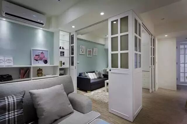 利用了一面墙来作隔断,床就这样轻松被隐藏起来了。
