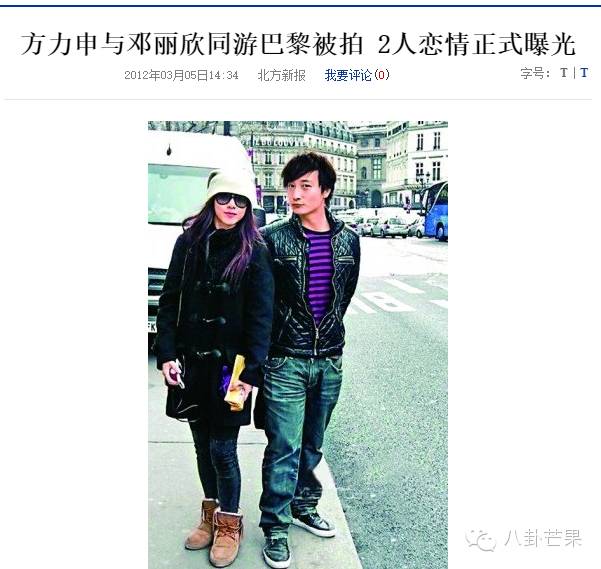 两人在街上还是稍显避忌,男方走在前方,而女方则躲在后面跟着走。两人发觉沿途有记者拍摄时,主动叫女友“一起拍啦!”邓丽欣闻言乖乖站到男友身边。方力申在接受访问时透露,由于正值巴黎时装周,有很多传媒到来,所以自己已经做好了被拍到的准备;而一旁的邓丽欣全程不出声。