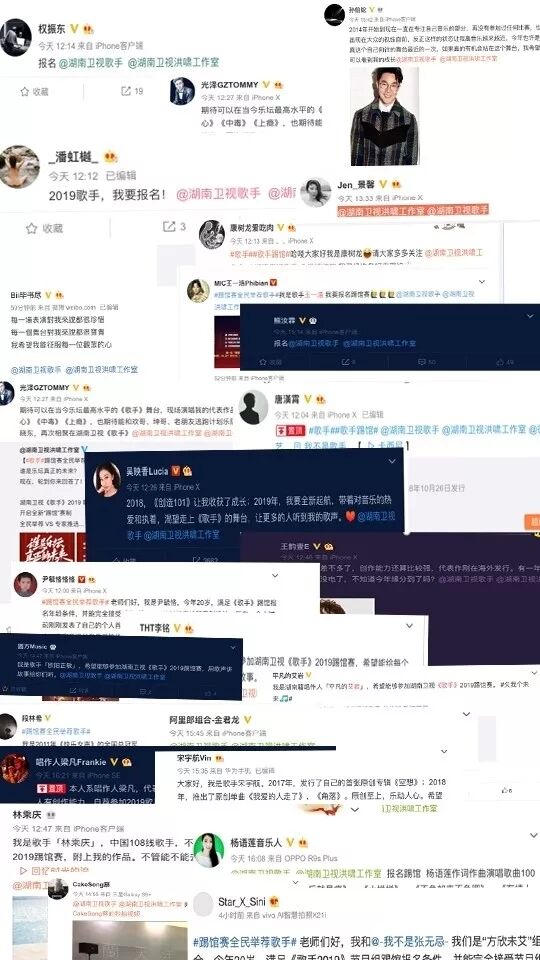 全新的自荐模式让原创歌手们达到了前所未有的活跃度,他们或谦逊、或直接、或迫切的报名宣言也让观众看到了他们对舞台的向往、对音乐的赤诚。据悉,本轮报名的统一投票时段将于12月31日开启,全程为期五天。更多精彩,关注湖南卫视1月11日起每周五晚22:00《歌手》2019。
