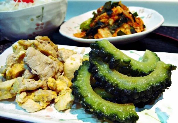 日本人通常不吃苦瓜,但在冲绳夏天,苦瓜有的是。我有时会做一盘苦瓜炒蛋,或者鸡蛋炖豆腐,而冲绳特色菜是“苦瓜豆腐炒鸡蛋”。