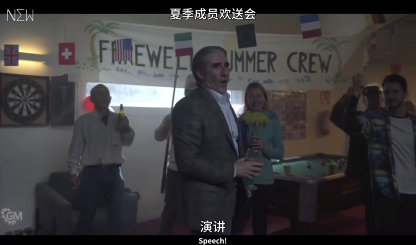 遵循“北极星六号”基地的传统,大伙儿在迎接极夜的第一天以一起看电影的方式为新加入科考队的玛姬举行了欢迎仪式。